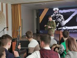 Сегодня в стенах МАОУ "СОШ г. Билибино ЧАО" прошла знаменательная встреча будущих выпускников и обучающихся с героем наших дней — участником специальной военной операции, выпускником нашей школы, Александром Николаевичем Сычевым.
